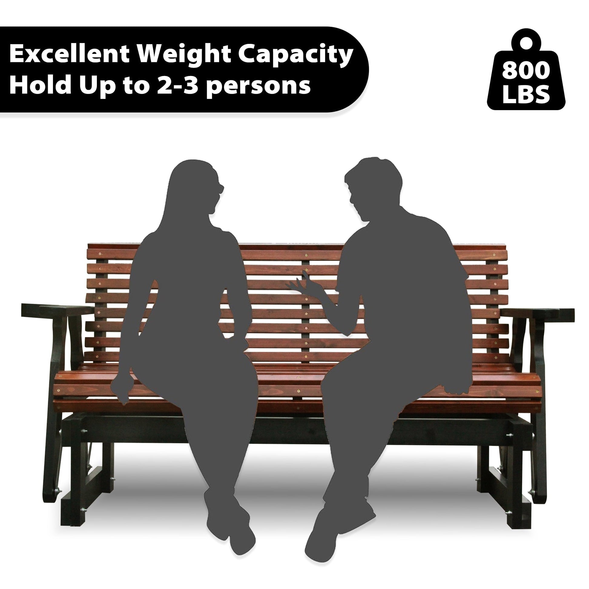Elevate your outdoor relaxation with the Beneouya outdoor glider bench. Crafted from durable pine wood, this 5-foot glider offers a smooth and quiet gliding motion, perfect for enjoying the breeze on your porch or patio. The contoured backrest and seat provide comfortable support for up to two adults, with a sturdy frame that can hold up to 800 pounds. Featuring a traditional, rustic farmhouse design, this glider seamlessly blends form and function, adding a touch of charm to any outdoor space.The gliding chair is available in a variety of colors.