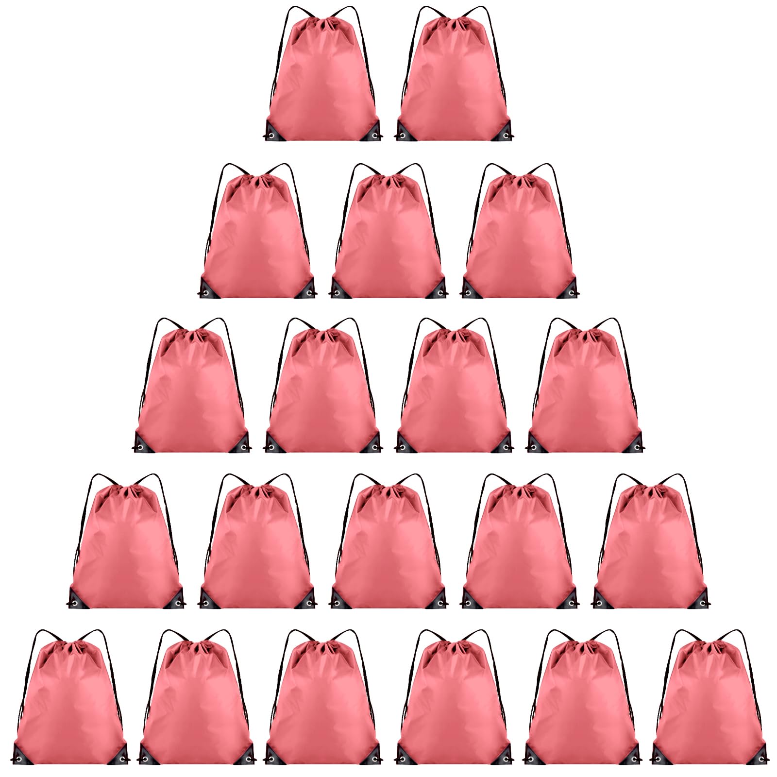 Grneric 20 Pieces Drawstring Backpack Bulk Cinch Sackpack Ployster Drawstring Bags for Gym Party Trip(Peachy)