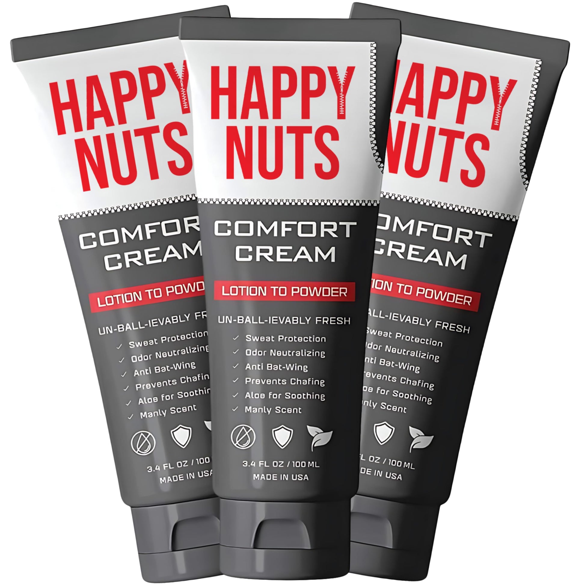 HAPPY NUTS Comfort Cream Deodorant For Men: Anti-Chafing Sweat Defense, Odor Control, Aluminum-Free Mens Deodorant & Hygiene Products for Men's Private Parts 3.4 oz.(3 Pack, Original)