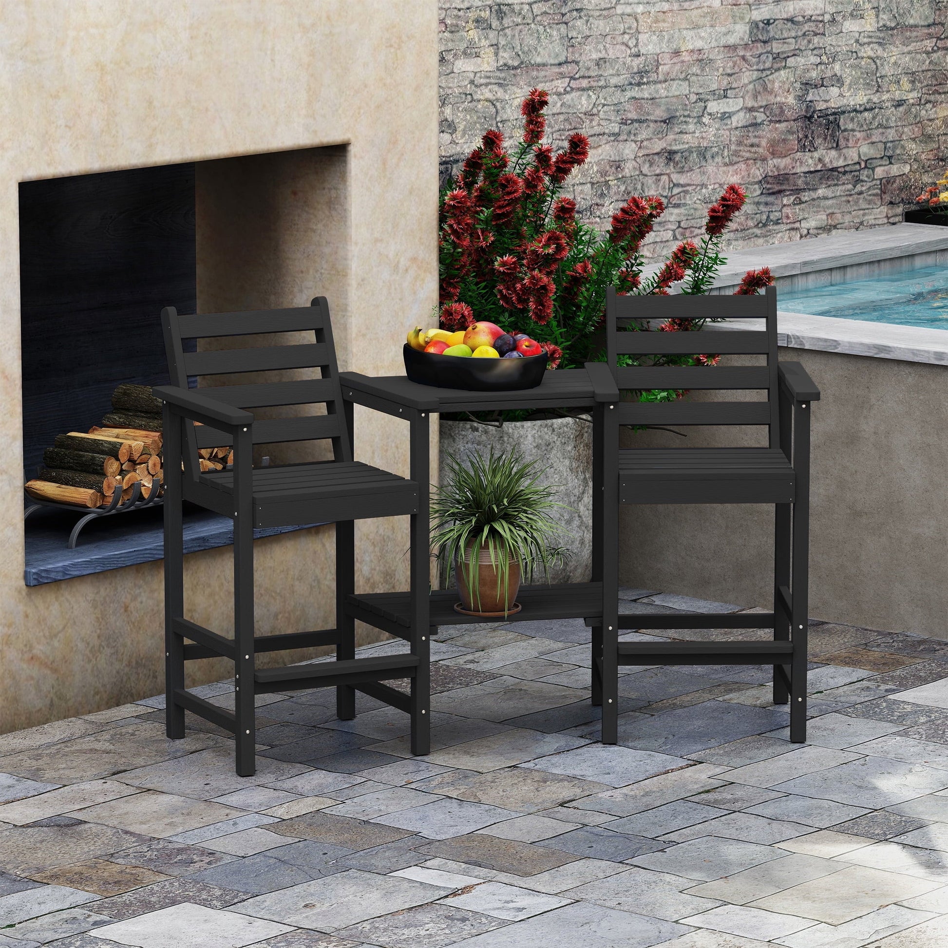 AreShark HDPE Tall Adirondack Chair Set with Removable Double Trays (Set of 2) Black