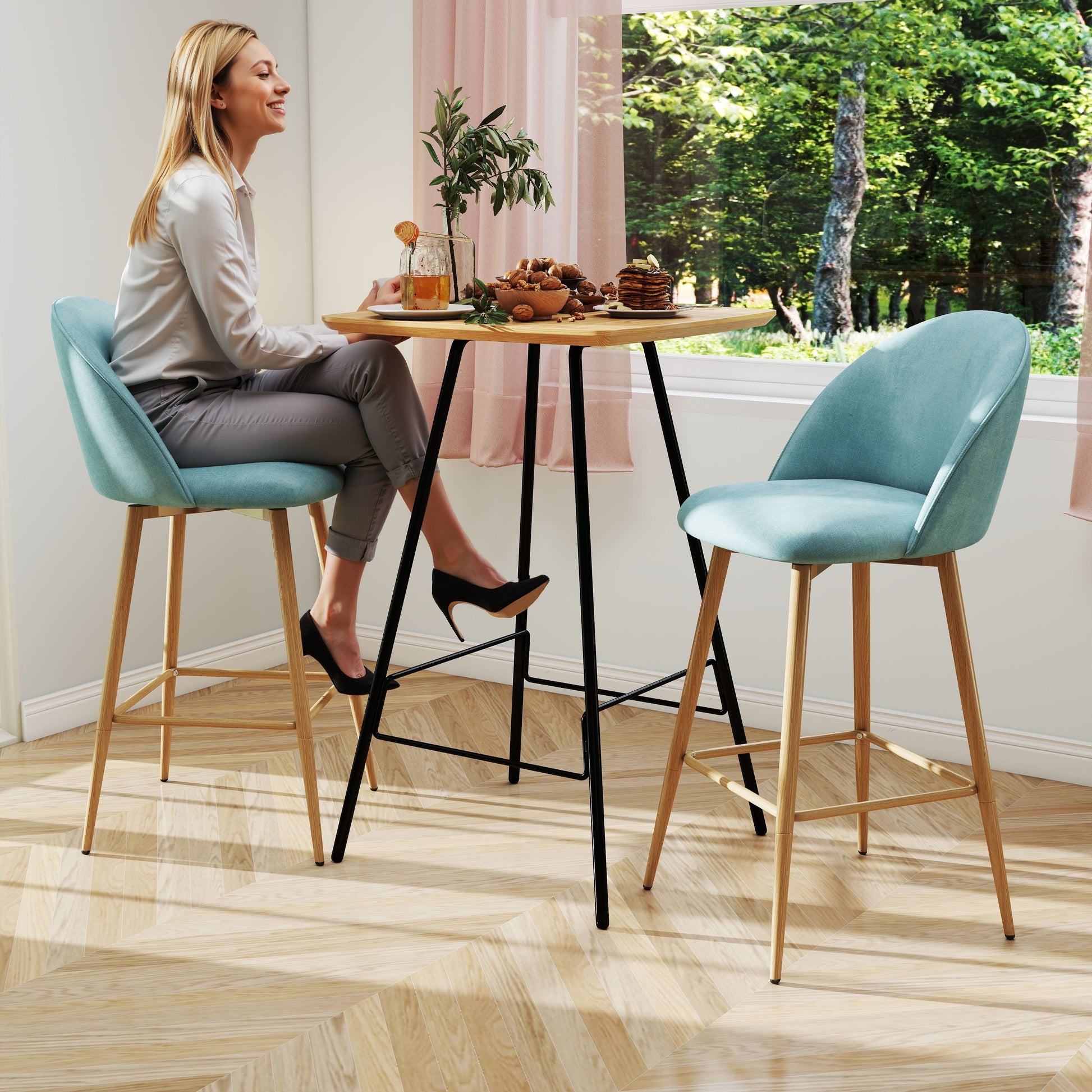 Perfect your outdoor social space with this 2-piece set of 26-inch swivel bar stools from Homy Casa. Whether you're gathering around a backyard BBQ island, sipping coffee at a balcony breakfast bar, or hosting friends in a garden bistro, these stools provide the ideal mix of comfort and style. The vintage saddle brown faux leather is water-resistant and easy to clean, while the sturdy powder-coated metal frame ensures durability for outdoor use. Designed with a supportive curved back and smooth 360° swivel function, they’re made for lively evenings and relaxed mornings alike.