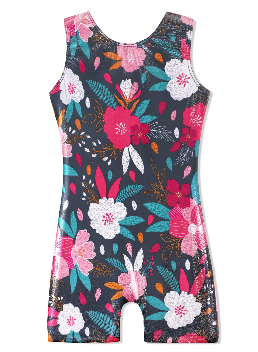 HOZIY Girls Leotards for Gymnastics with Shorts 5t Size 5-6 Year Old Black Flower Tumbling Outfits Kids Leo Bodysuits Green Hot Pink White Biketard Body Gimnasia Nina Clothes Clothing