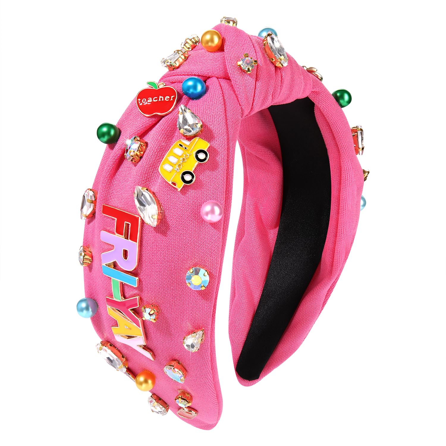 JERTOCLE Teacher Headband Accessories Beaded Crystal FRIYAY Knotted Headband Jeweled Wide Back to School Headband Hair Accessories Gifts for Teacher Appreciation (FRI-YAY)