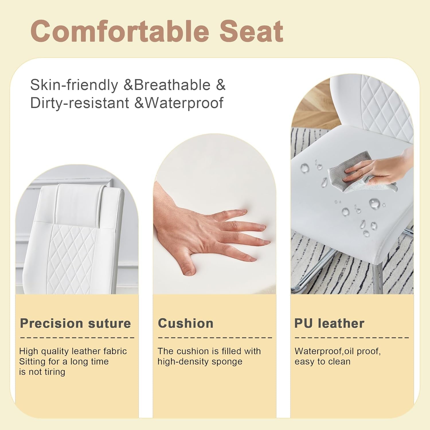 JUFU Modern White Dining Chairs Set of 4, Faux Leather High Back with Chrome Legs