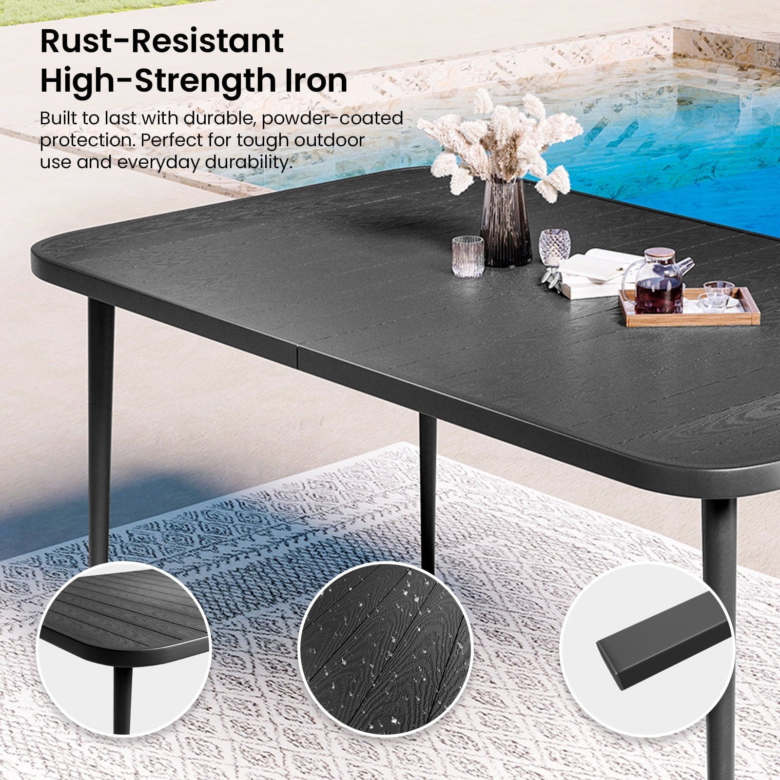 JUSTLET 6-Person Heavy-Duty Outdoor Rectangular Metal Dining Table – Rust-Resistant, Waterproof, Sunproof, All-Weather Patio Table for Garden, Deck, Porch, Backyard – Brown