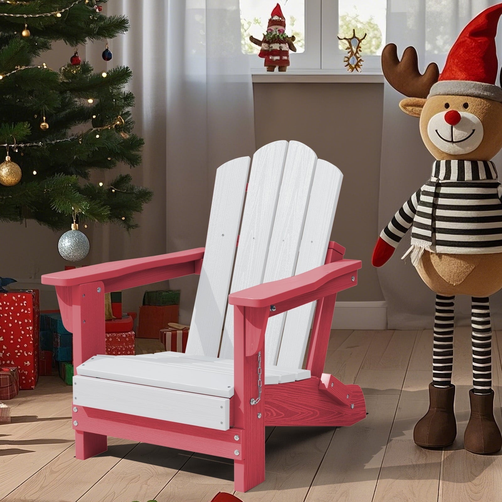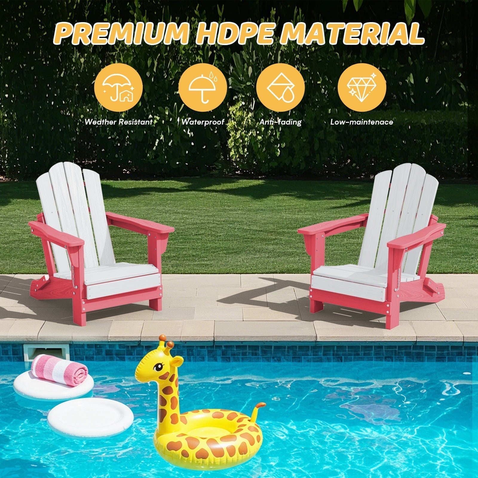JUSTLET Kids Foldable Adirondack Chair, Lightweight HDPE Outdoor Chair, Weather-Resistant, Portable,Pink and White