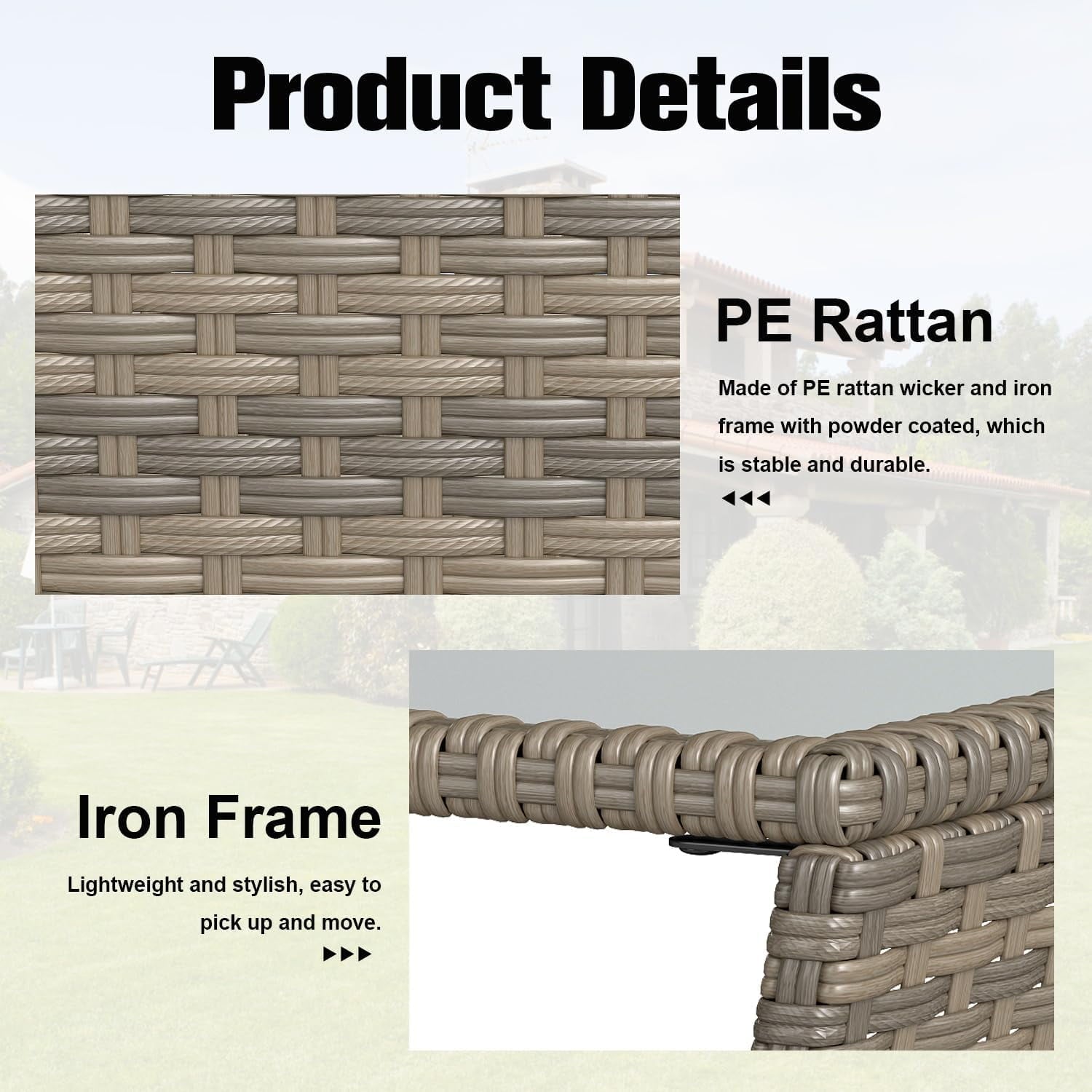 Material: iron, rust-resistant, PE Wicker Rattan, and Glass