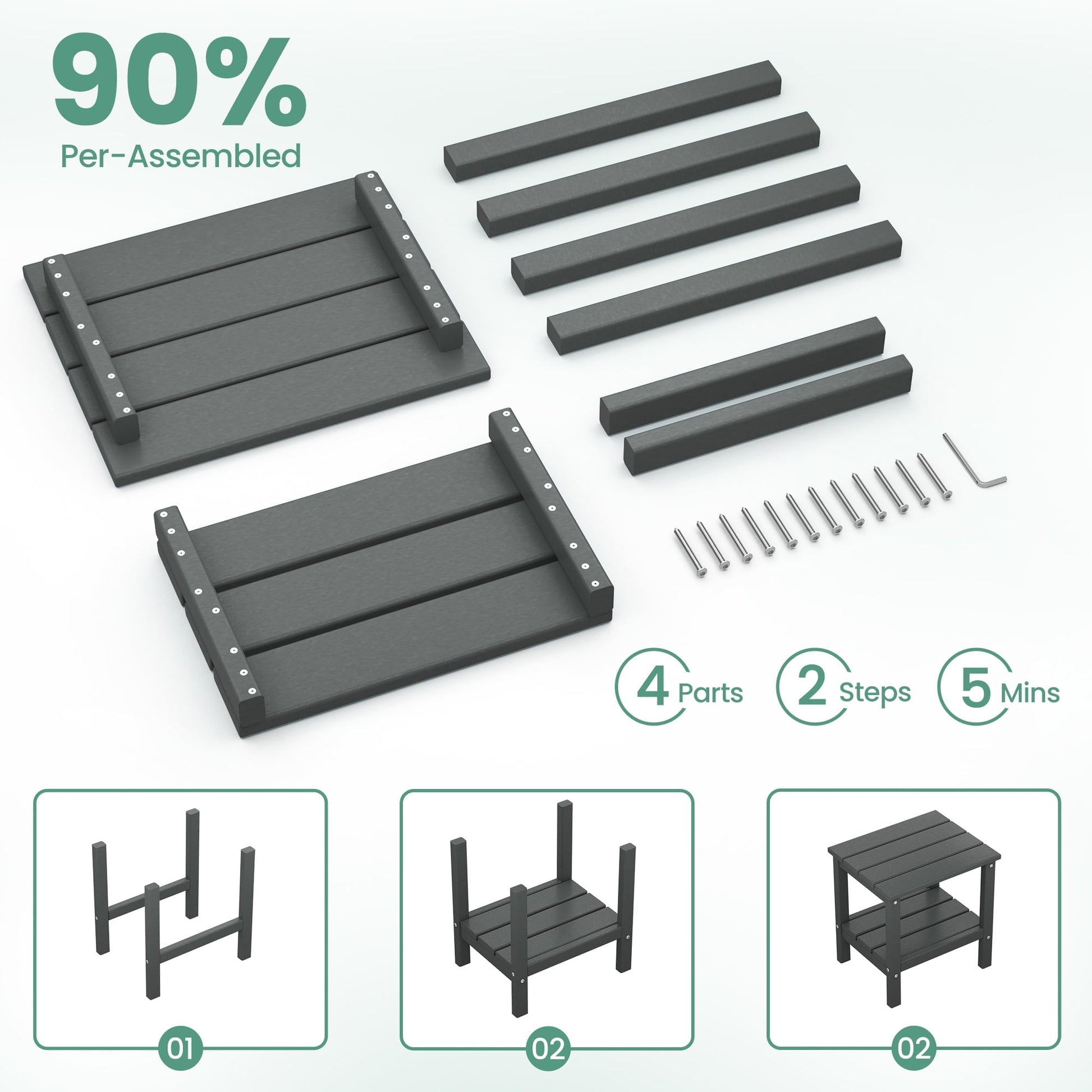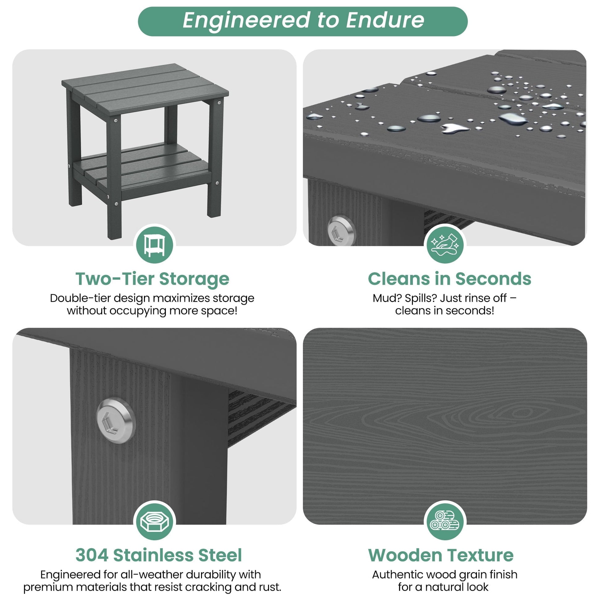KINGYES 2-Tier Outdoor Side Table, HDPE All Weather Adirondack Small Patio Tables, For Garden Balcony Pool Indoor, Gray