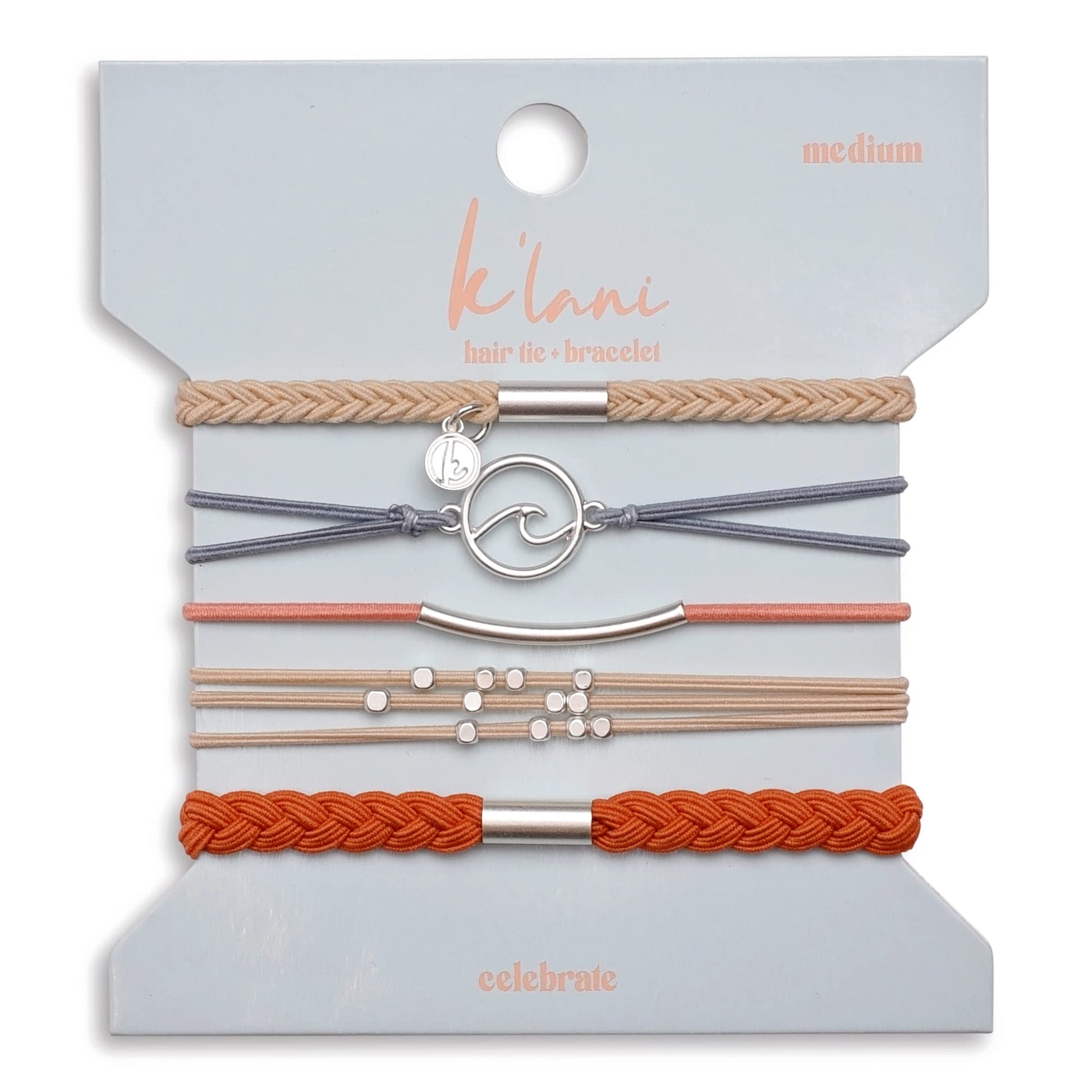 K'lani Celebrate Bracelets for Women – Elastic Bracelets and Boho Hair Ties – Cute Hair Ties for Women and Hair Tie Accessories – Stylish Bracelets Boho Style for Hair and Wrist – Set of 5 (Large)