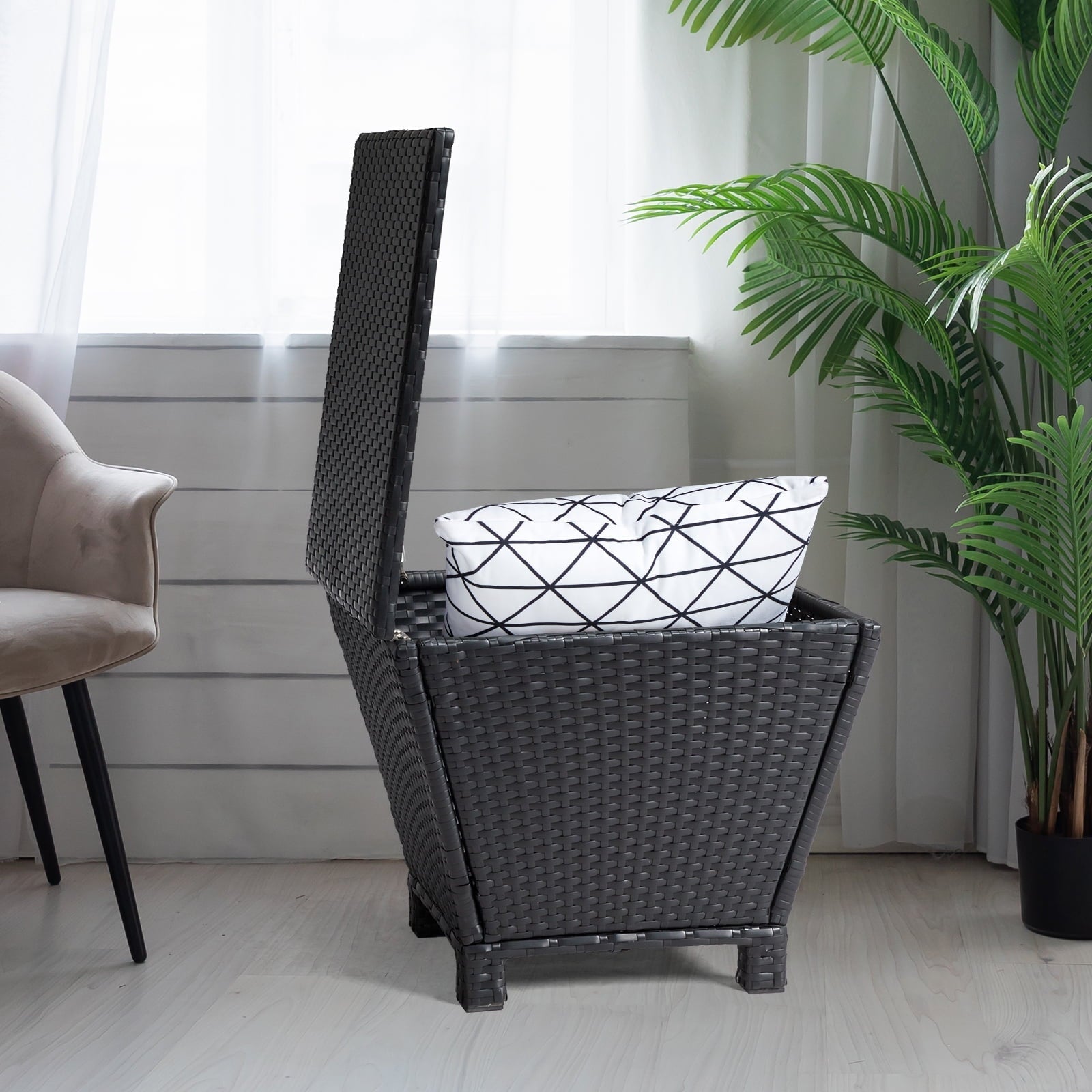 Ktaxon Wicker Side Table with Storage, 13 Galllon Ratten Storage Side Box Container, Wicker Storage Coffee Table for Outdoor Indoor, Black