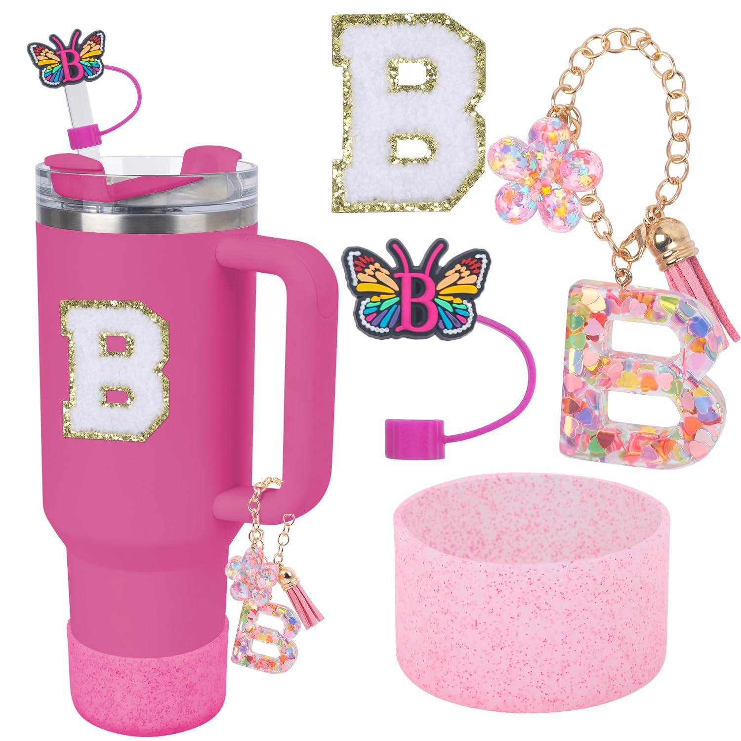 LA KEN DU Use for Stanley Cup Accessories Charms 40oz 30oz,Compatible with Stanley Cup Letter Charms for Handle Silicone Boot,Straw Cover Topper & Sticker(B)