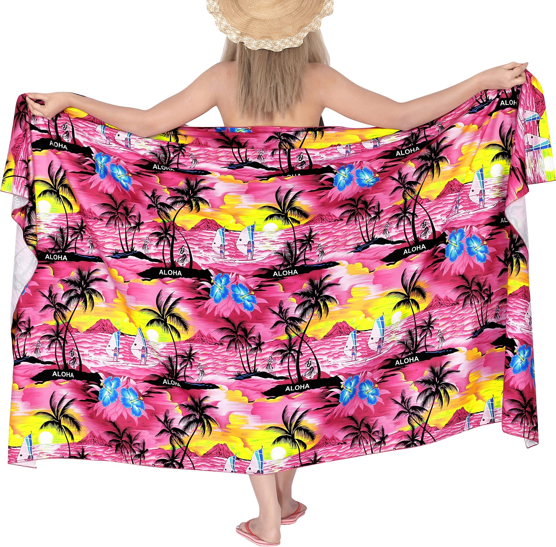 LA LEELA Soft Light Hawaiian Beach Bikini Wrap Sarong Printed 88"X42" Pink_3455