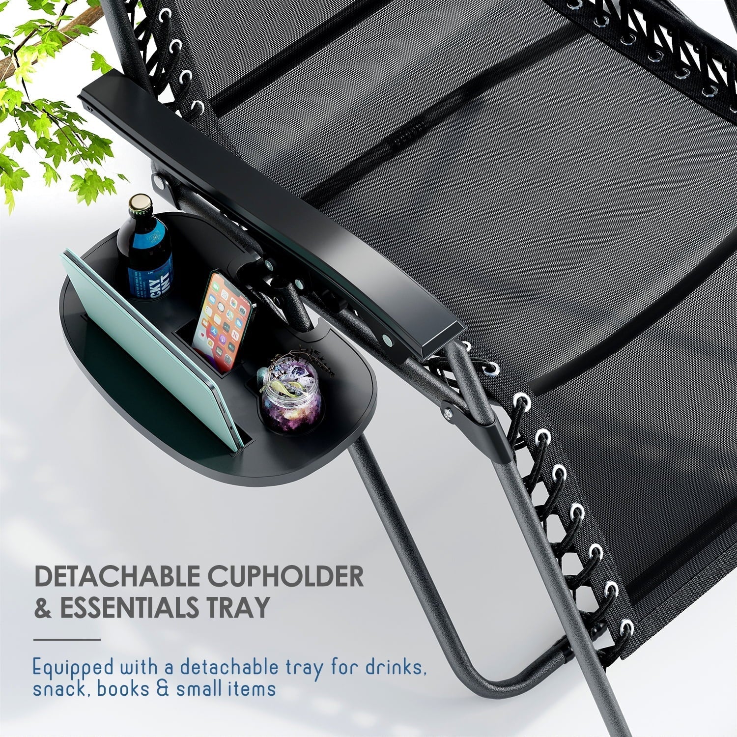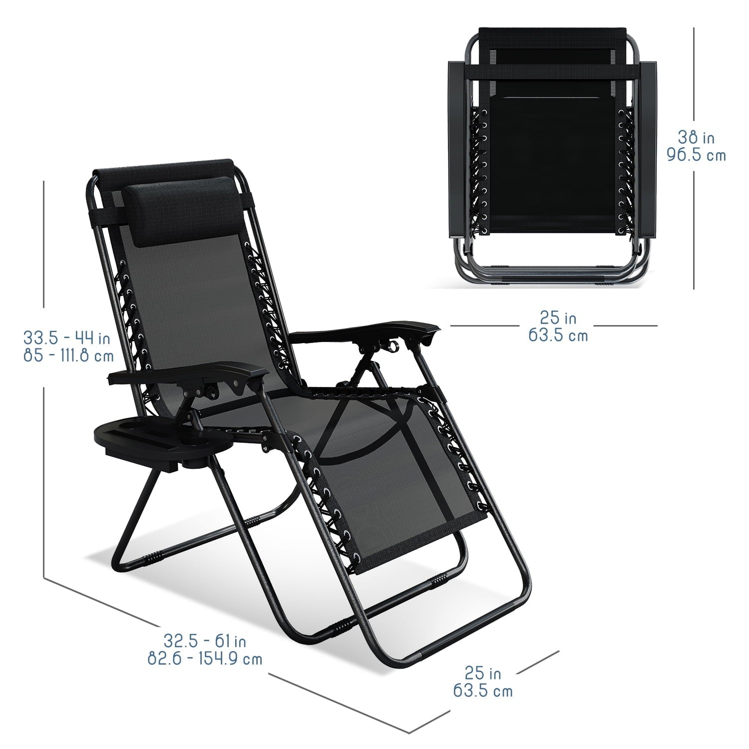 LammaLoe Zero Gravity Chair, Outdoor Lounge Chairs with Cup Holder, Black