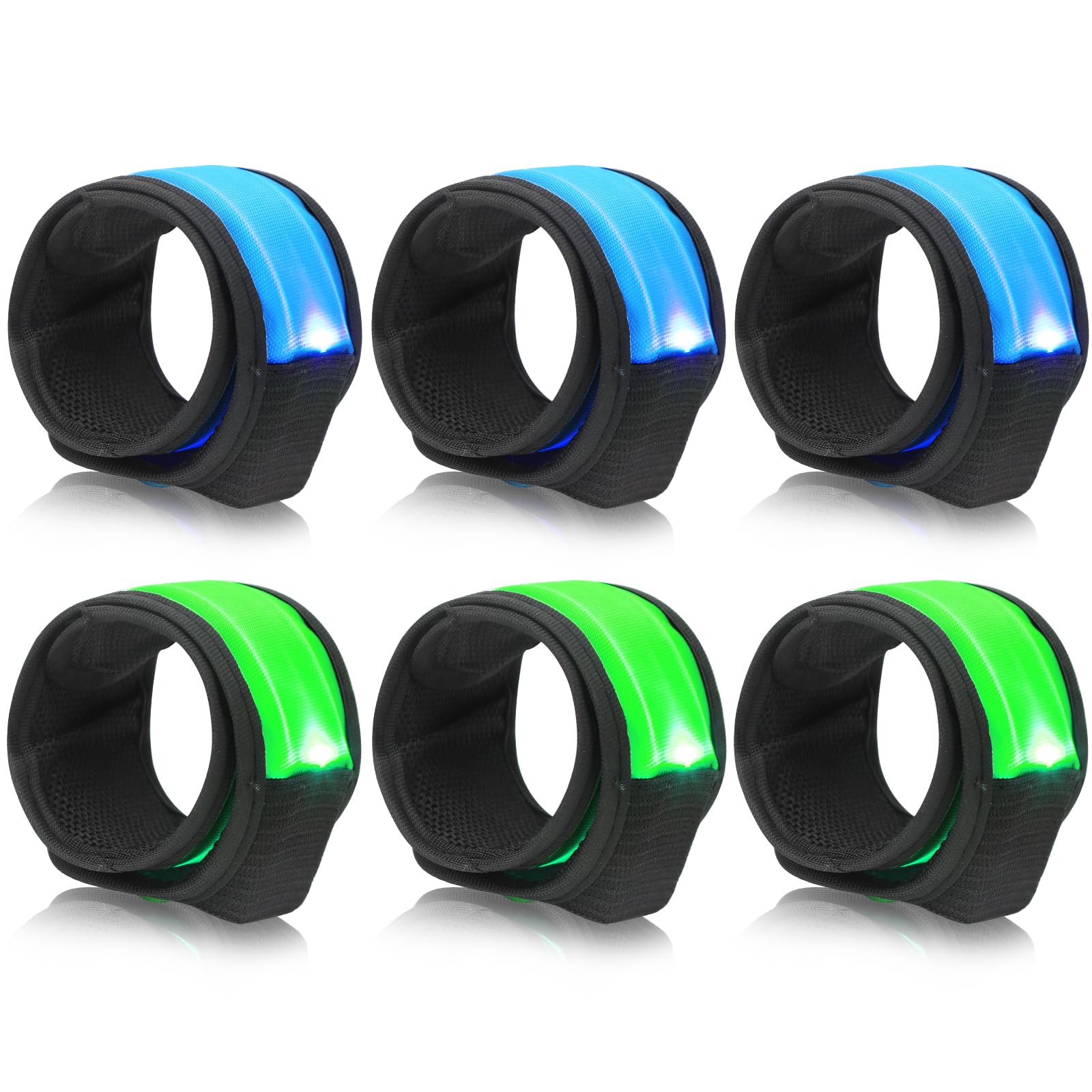 - PACKAGE: There are 6 LED slap bracelets in one pack (green & blue). Price is quite reasonable and you can share it with your family, friends and kids. This armband is TPU coating on the front and back side in order to improve its rainproof and sweat-proof ability.