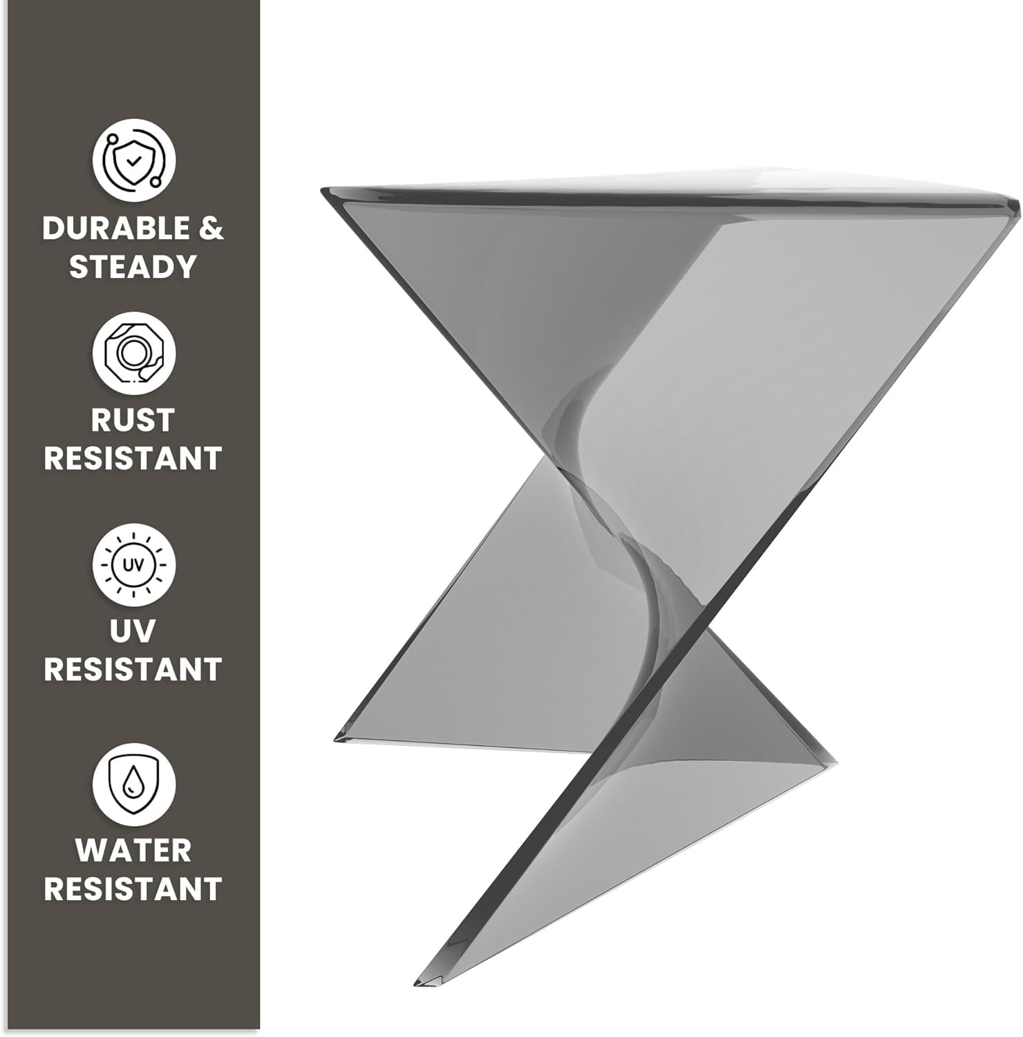 LeisureMod 17" Smoke Stackable Side Table - Modern Triangular Accent End Table for Indoor & Outdoor Use, Weather-Resistant Plastic Design for Living Room, Backyard, or Lawn