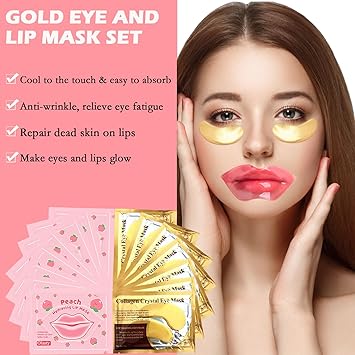 - 【Nourishing Effect】The peach extract lip mask and 24k gold eye mask skincare set will gradually dissolve at body temperature and quickly penetrate into every pore of the skin, providing anti-aging, depuffing, and hydrating benefits. They effectively moisturize the lips and reduce dark circles. With daily use, the effects will be noticeable