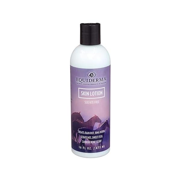 Equiderma skin lotion Equiderma skin lotion aids in the treatment of sweet itch, summer itch, muck itch, rain rot, scratches and insect bites. It is simple to use: just apply and the product will do the rest. Features: fast acting non-messy and easy to apply aids in treatment of a variety of skin conditions including rain rot, ring worm, scratches, etc. Item specifications: Size: 16 oz. Ingredients: mineral oil, aqueous solution, surfactant, chlorhexadine, n-trichloromethylthio, 4-cyclohexene-1, 2-dicaboximide