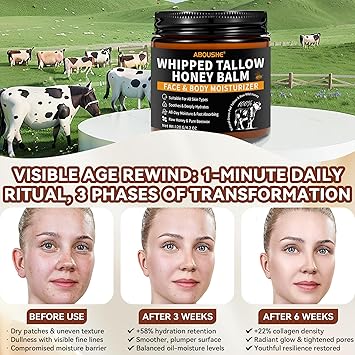 - 【Whole-Body Hydration for Every Skin Type】- From your face to your elbows, this tallow honey balm provides deep, lasting moisture wherever your skin needs it most. Enjoy a multi-purpose skincare solution that keeps your skin nourished, smooth, and healthy.