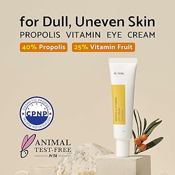 IUNIK Propolis Vitamin C Face & Eye Cream with Vegetable Oil, Idebenone 1.01 Fl Oz Dullness Dark Circles Puffiness Smooths Under Eyes 24 Hour Hydration For Sensitive Oily Acne-prone skin VEGAN