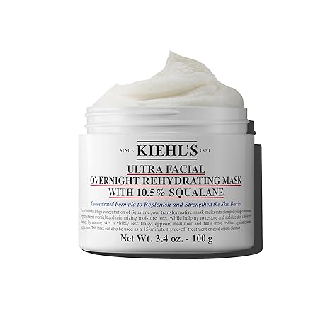 Kiehl's Ultra Facial Overnight Hydrating Face Mask with 10.5% Squalane, Deeply Hydrates Skin & Strengthens Moisture Barrier, Treats Dryness Flaky Skin, Paraben-free, Fragrance-free, All Types