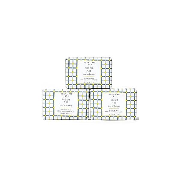 Beekman 1802 Goat Milk Body Soap Bar 3-Piece Set, Fresh Air - Scented 3.5 oz Nourishes, Moisturizes & Hydrates 100% Vegetable with Lactic Acid Good for Sensitive Skin Cruelty Free