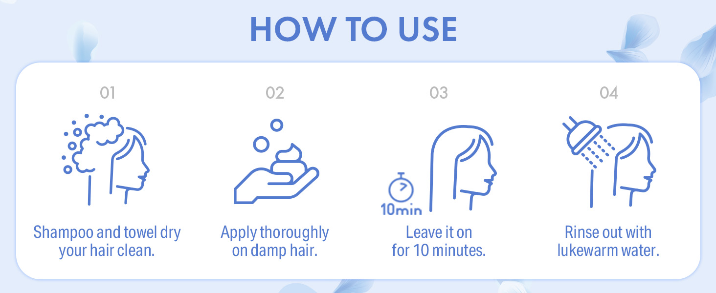 - HOW TO USE? . After applying shampoo and drying with a towel, apply the appropriate amount of this scalp mask onto the damaged hair or tip. After 3 minutes, rinse off with water, and that's simply it!