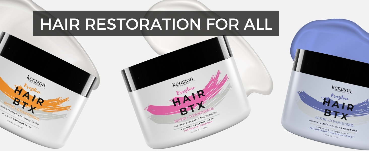 KERAZON Intensive Brazilian Hair BTX Smoothing Treatment 8oz 236ml For All Types, Thermal Activated Mask Damaged and Long Lasting Volume And Frizz Control