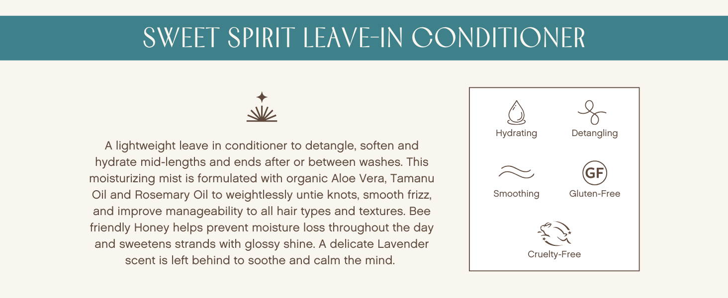 - WHAT'S INCLUDED: I Create Hold (10 fl oz), Sweet Spirit Leave-In Conditioner (2 fl oz), and Hair Love Prep Spray (2 fl oz)