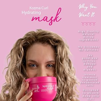 Kozma Curl Hydrating Mask 300ml comes with in a convenient jar to help you easily dip with your hands while working with your curls in the shower! Melt this lush mask into your hair and say goodbye to frizz, damage and dryness. This is a treat your hair will love! This intense treatment is designed to absorb deep into the hair and quench the thirst of even the most dehydrated curls. Promotes healthy curl elasticity. Results are soft, manageable, and happy curls. This treatment will help your curls to look and feel healthy, happy and gorgeous! About Kozma Curl brand: Kozma Curl products are made with love NO SILICONES NO SULFATES PARABEN FREE VEGAN / CRUELTY FREE With high-quality natural key ingredients which nourish and protect the hair, there is plenty to love about Kozma Curl Products. Barbary fig (cactus fruit), macadamia seed oil, coconut oil, aloe leaf, & soy protein are just some of the ingredients that make them gentle yet effective resulting in frizz-free, healthy, hydrated and defined curls. Kozma Curl products are designed to be easy and simple to use so that anyone, with any curl type can realize the full potential of their natural hair texture. We offer curl care and curl styling solutions through the form of hair products (cleansers, moisturizers, treatments and stylers) and tools (such as clips, towels, and diffusers) to help you embrace and love your curls.