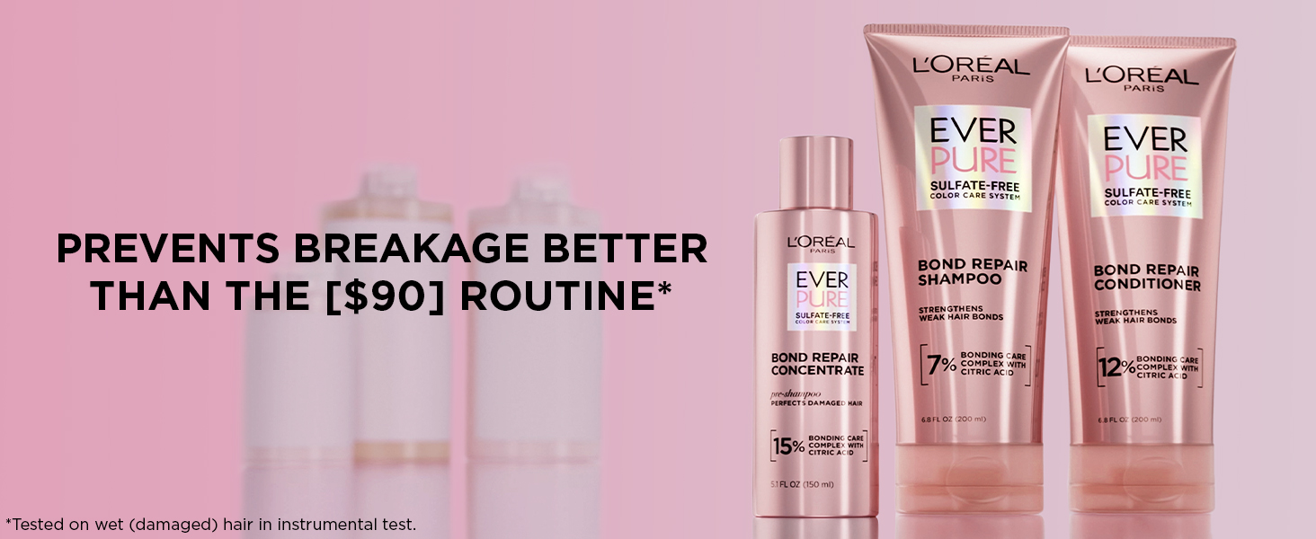 Rebuild damaged, weak hair bonds with our EverPure Bonding Hair Care System. Made with citric acid to repair and strengthen for healthier and smoother hair. When hair is colored, bleached and damaged it can become weak on the inside and out. EverPure Bond Repair Shampoo and Conditioner system with citric acid penetrates inside the hair cortex to help rebuild weak hair bonds. Repairs hair's strength in just one use with system. Scientifically tested to strengthen hair and reduce breakage. For smoother hair than with the number one prestige routine*. *On wet (damaged) hair in instrumental test. Leading prestige routine based on NPD full year data.